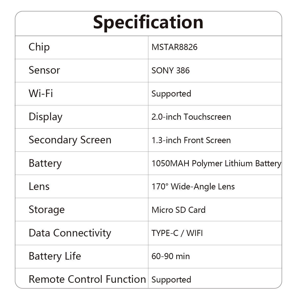 - Rear 2.0-inch Touch Screen: Maintains the advantage of a traditional large screen, offering crystal-clear touch control and playback.