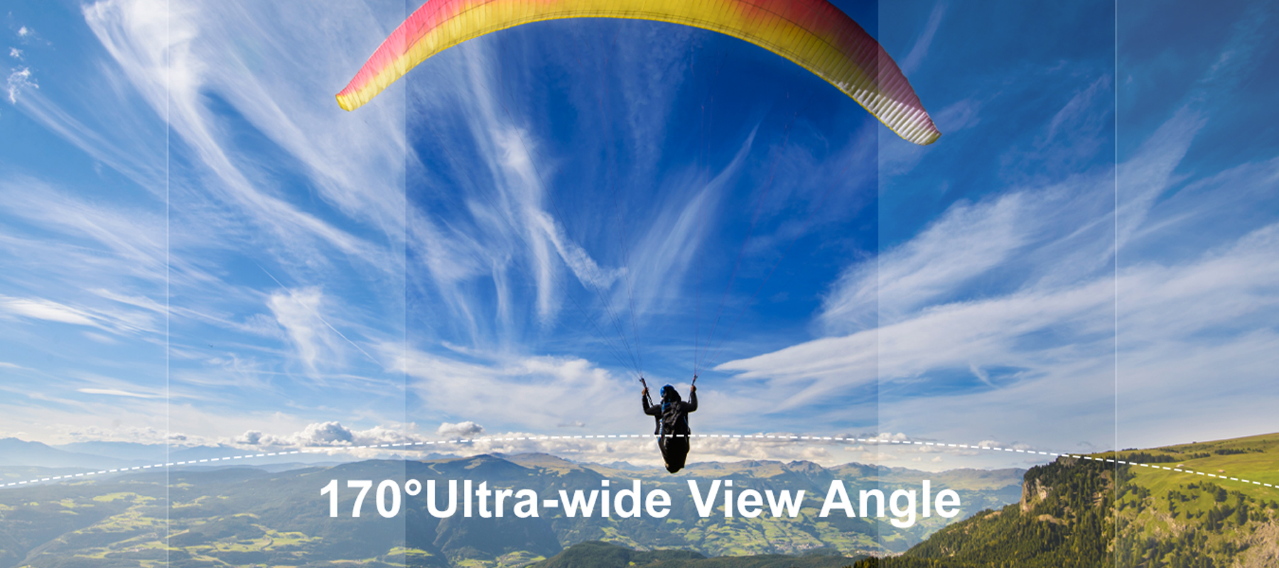 - 170° Ultra Wide Angle – Capture a wider view with AI distortion correction for natural, clear footage.